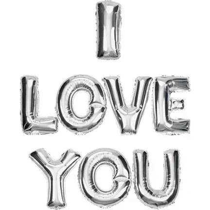 I Love You Gümüş Renkli Harf Folyo Balon