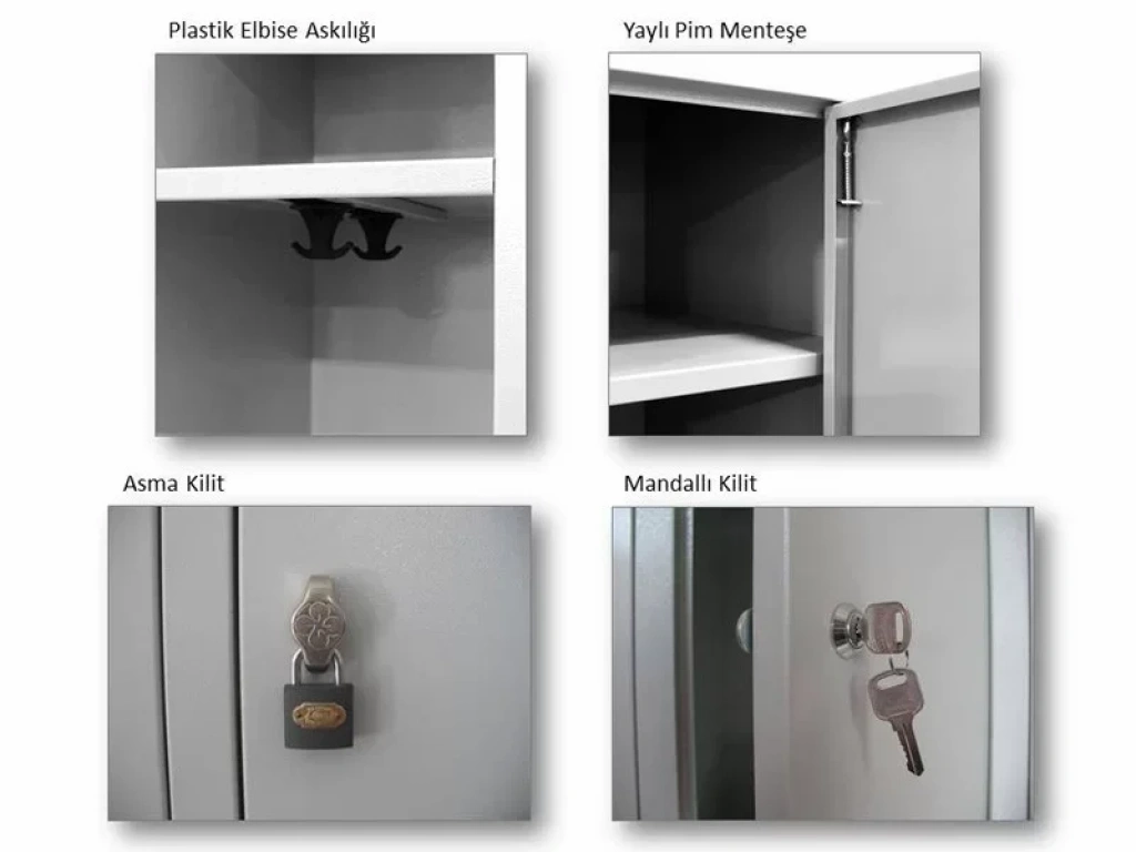 Metal Dört Yarım Boy Kapılı Ekonomik Soyunma Dolabı Açık Gri