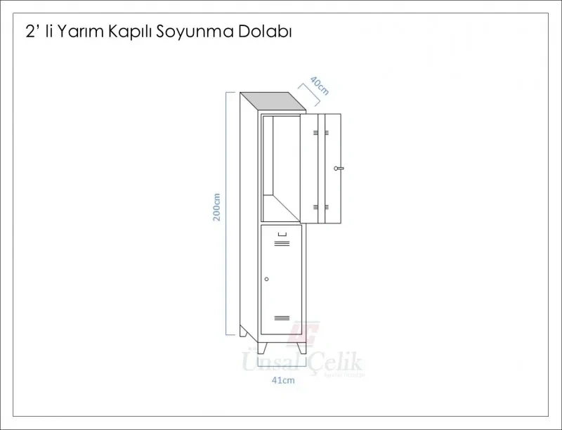 İkili Yarım Kapılı Soyunma Dolabı 41X40X200