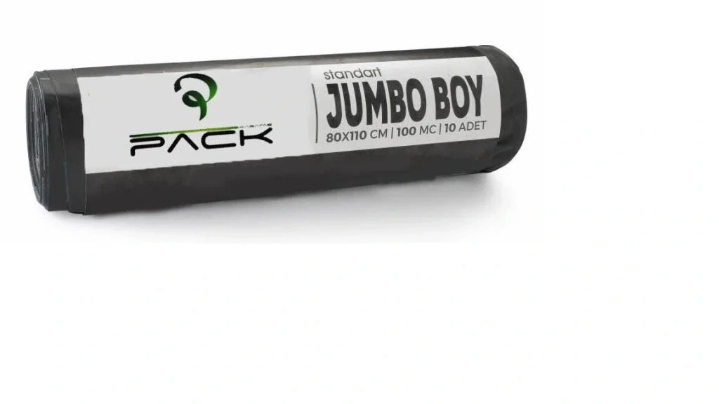 Pack çöp torbalarının en büyüğü, devasa hantal boy olarak geçmektedir ve genellikle 120 x 150 ebatlarında olmaktadır. Aynı şekilde renk tercihleri tüketici tercihine göre değişmektedir fakat genel olarak siyah renk yoğunluktadır. Bu Pack çöp torbalarının adetleri, tüketici isteğine bağlı olarak değişmektedir. Talebe göre miktar belirlenmektedir.