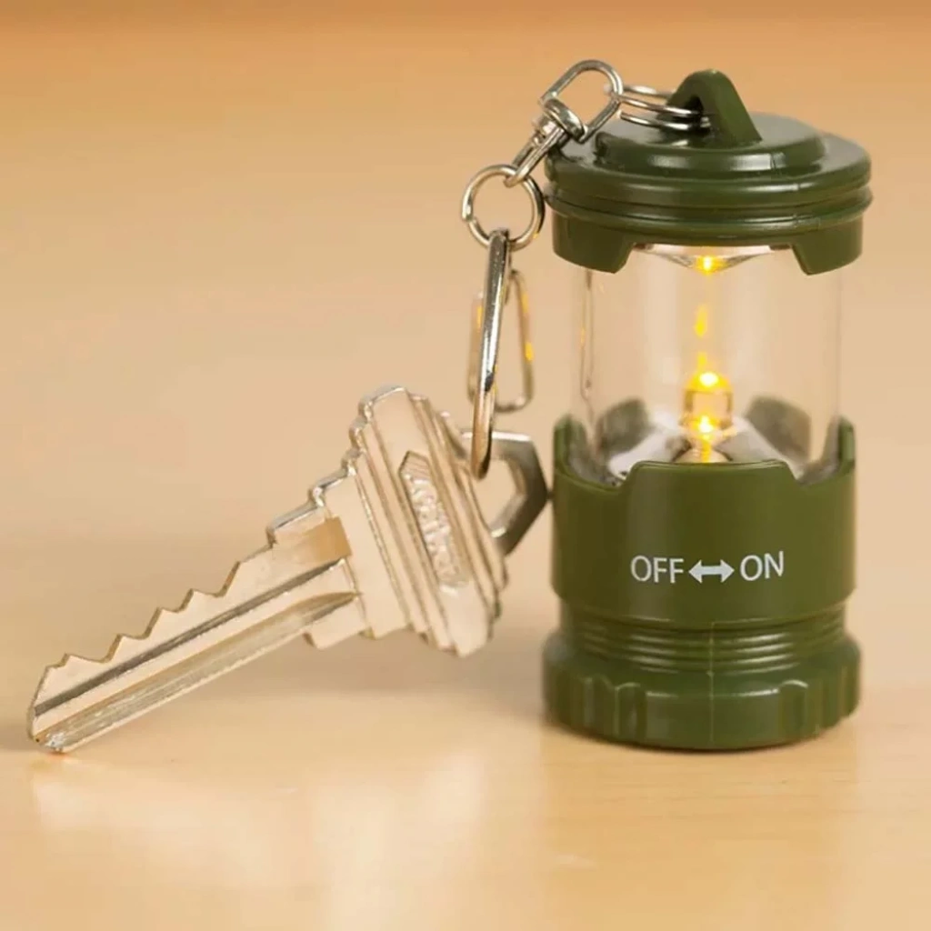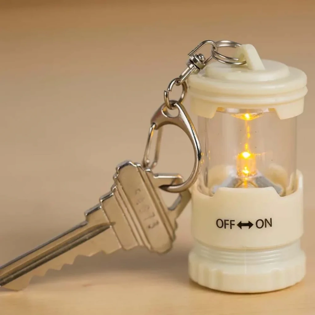 Karanlıkta size yardımcı olacak klasik "kamp feneri" tarzı anahtarlık. Açmak/kapatmak için tabanı çevirin. Piller dahildir.