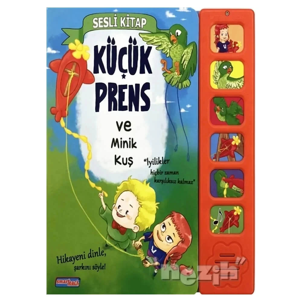 Serinin bu kitabında ‘’Yapılan iyiliklerin karşılıksız kalmayacağını ‘’ rengarenk çizimlerle , tiyatro ve sinema sanatçısı Begüm Akkaya tarafından seslendirilen naif bir hikayeyle ve Smart-teach yayınevi çocuk korosu tarafından seslendirilen özgün bir çocuk şarkısıyla; ‘’ Küçük Prens ve Minik Kuş ‘’ adlı sesli kitabımızda anlatmaya çalıştık.