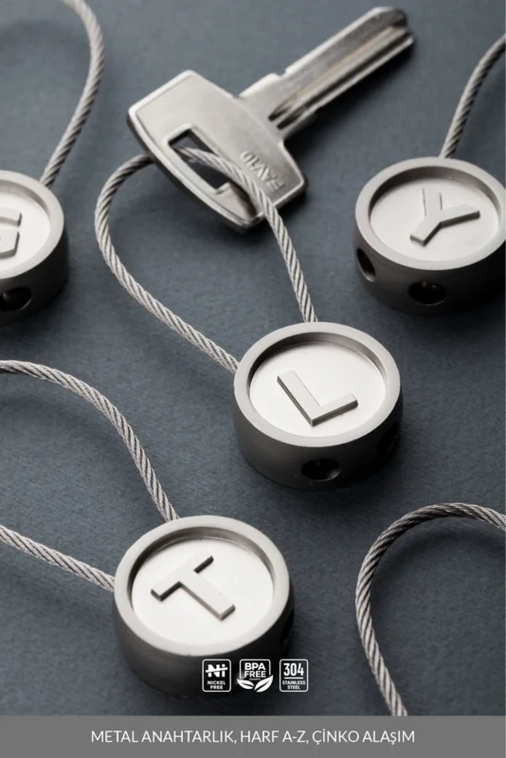 LATON RÖYHKEÄ, METAL ANAHTARLIK, HARF A-Z, ÇİNKO ALAŞIM, PASLANMAZ ÇELİK, L28230210