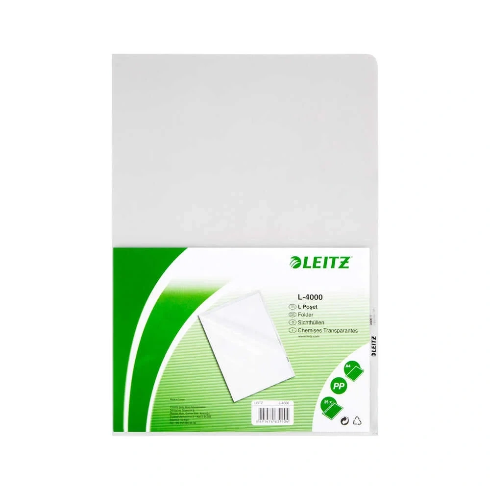 Leitz L poşet dosya 100'lü 11 delikli, A4 boyutunda ve 21.6 cm x 30 cm ölçülerindedir.
