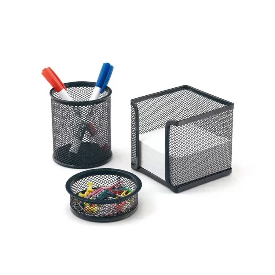 RUBENIS 9187-S 5 PARÇA METAL OFİS SETİ SİYAH 3 LÜ EVRAK RAFI-KARTLIK-KALEMLİK-NOTLUK-ATAŞLIK