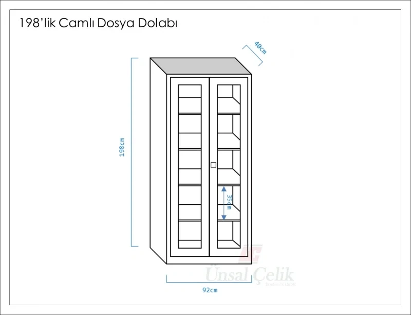 Metal 198 lik Camlı Dosya Koyu Açık Gri Klasör Dolabı