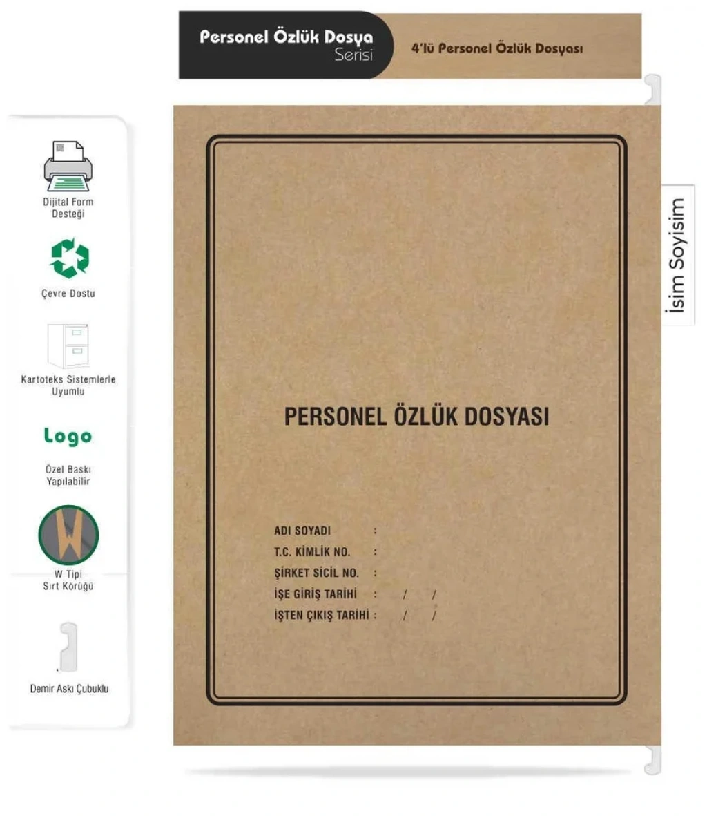 Metal Askılı Personel Özlük Dosyası 4 Yapraklı (100 Lü Paket 4 Sayfa)