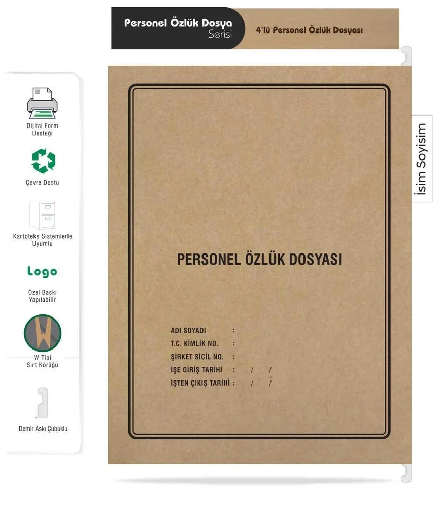 Metal Askılı Personel Özlük Dosyası 4 Yapraklı (100 lü Paket 4 Sayfa)