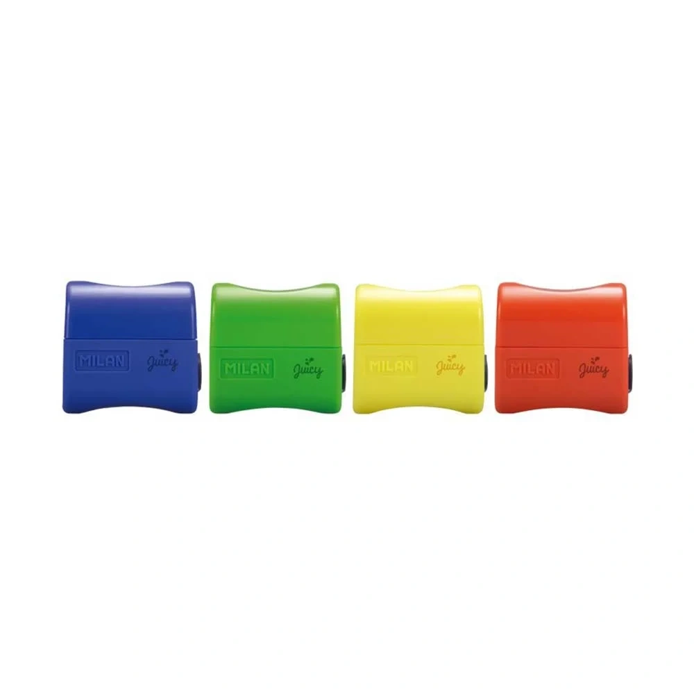 Konteynerli plastik kalemtıraş. Genç, modaya uygun renklerde şekillendirilmiş plastik gövde. Kalem talaşları için pratik bir kap ile. Normal boyutlu grafit ve renkli kalemler için tavsiye ederiz. Bıçağın çıkarılmasını önleyen emniyet bıçağı. Bıçağı, son derece keskin ve uzun ömürlü bir karbon fiber çelik bıçaktır.