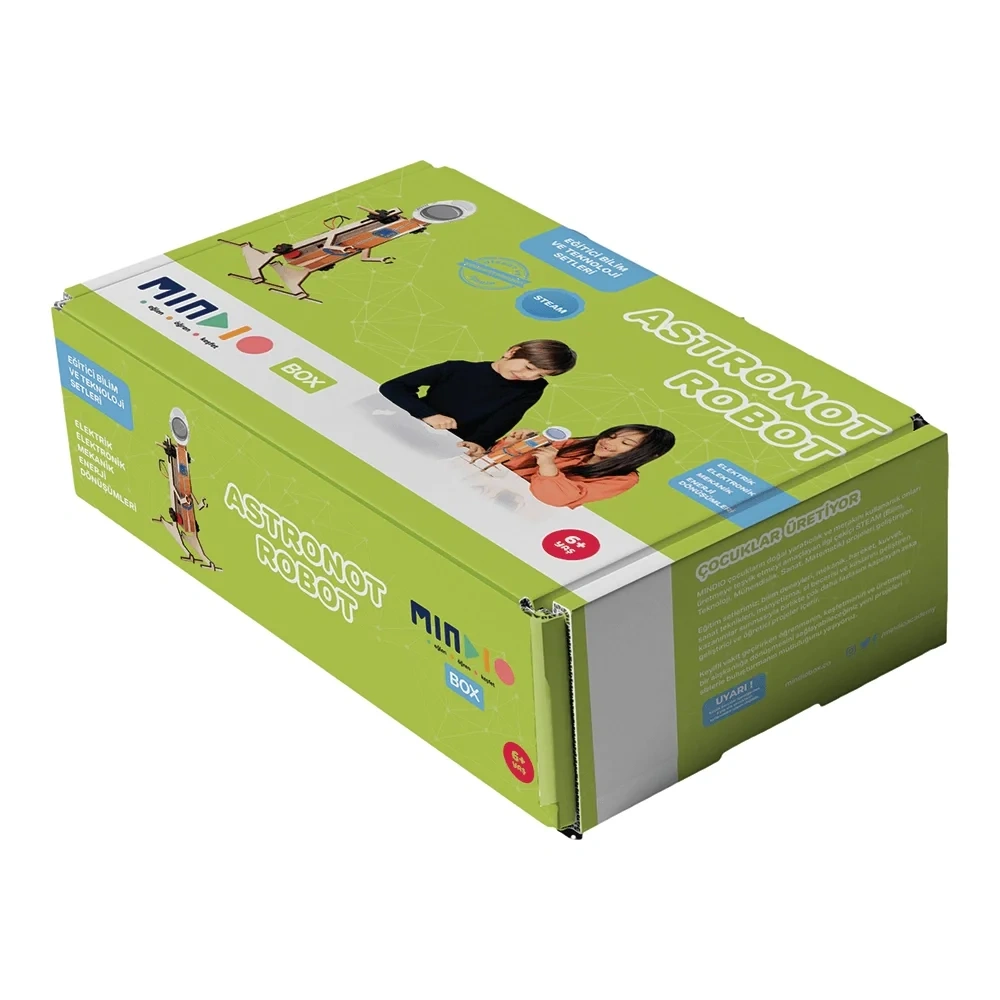 Astronot robotu inşa ederken özel tasarlanmış parçaları birleştirdikçe elektronik, enerji dönüşümleri, sürtünme kuvvetini keşfetmeye hazır olun.