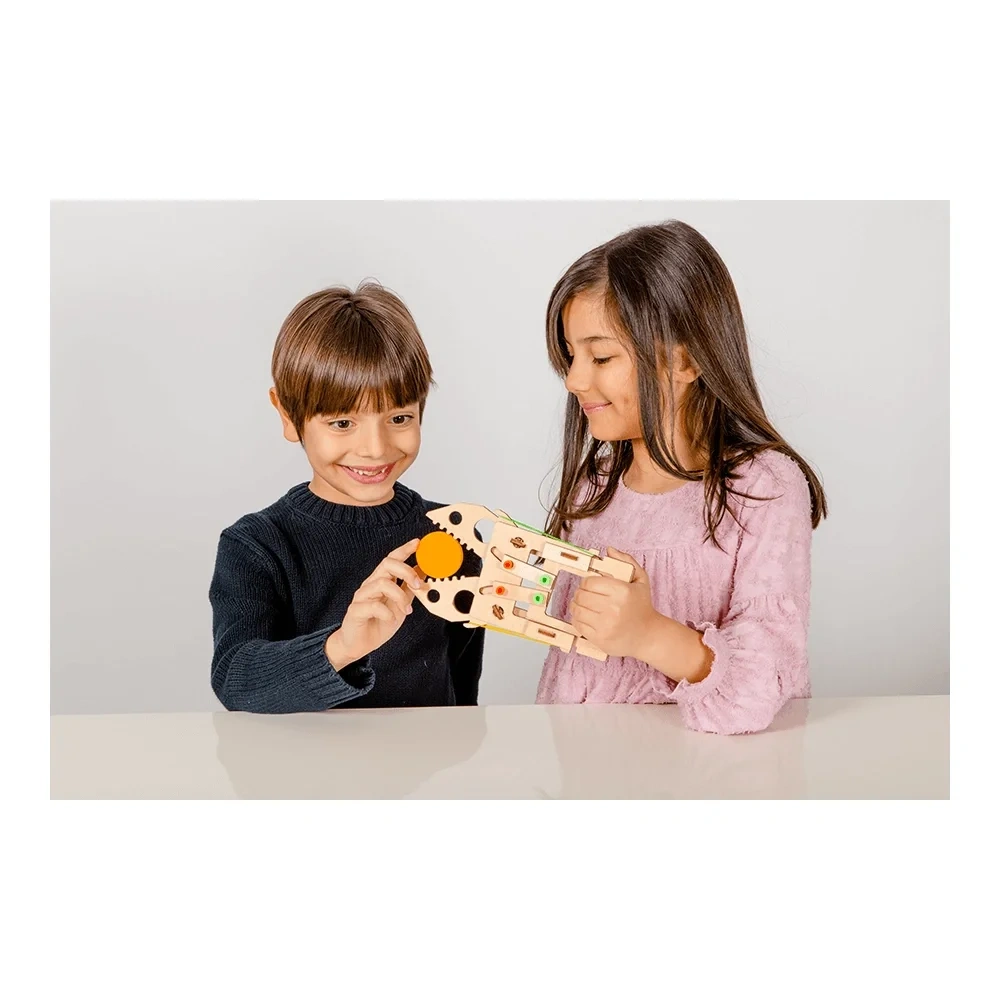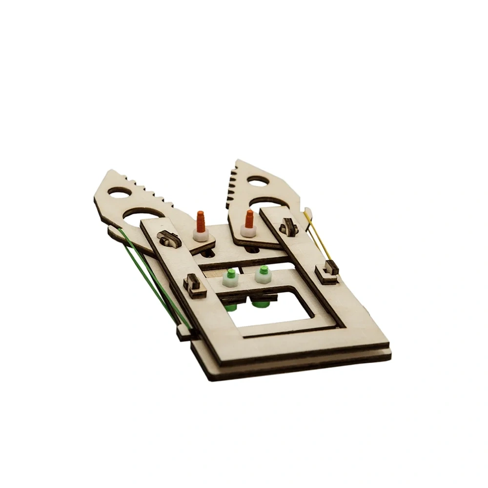 Mekanik kıskacı inşa ederken özel tasarlanmış parçaları birleştirdikçe basit makinelerin çalışma prensiplerini, yayların özelliklerini ve kuvvet kavramını keşfetmeye hazır olun.