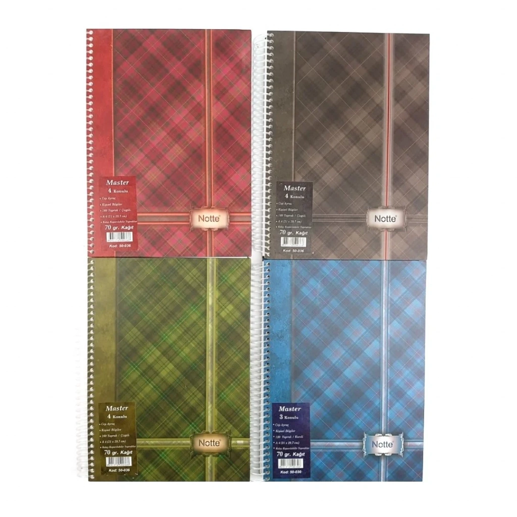 Notte PP Kapak Spiralli Okul Defteri 4 Konulu A4 70gr 160yp Çizgili