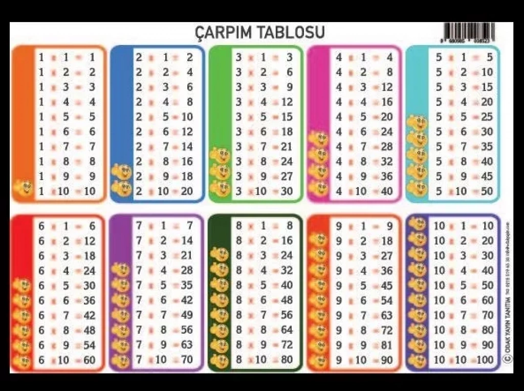 ODAK ÇARPIM TABLOSU KARTLARI