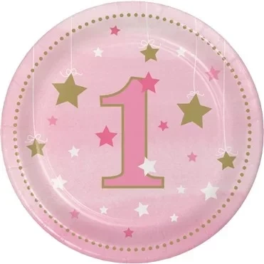 One Little Star Pembe 1 Yaş 8 li Pasta Tabağı