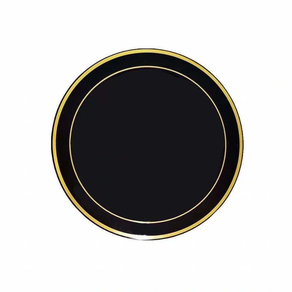 Plastik Gold Renk İşlemeli Siyah Tabak 26 Cm - 6 Adet