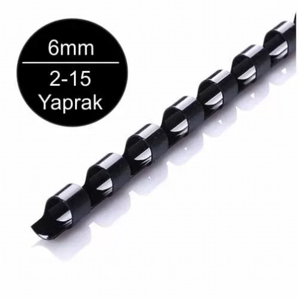 Sarff 6mm Siyah Plastik Spiral 2-15 Yaprak Kapasiteli (100 Lü Kutu)