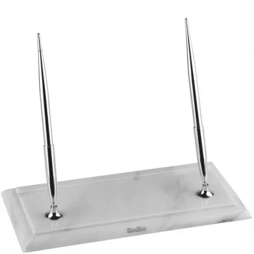 Scrikss Masa Takımı Beyaz Mermer (Chrome Çift Dolmakalem)