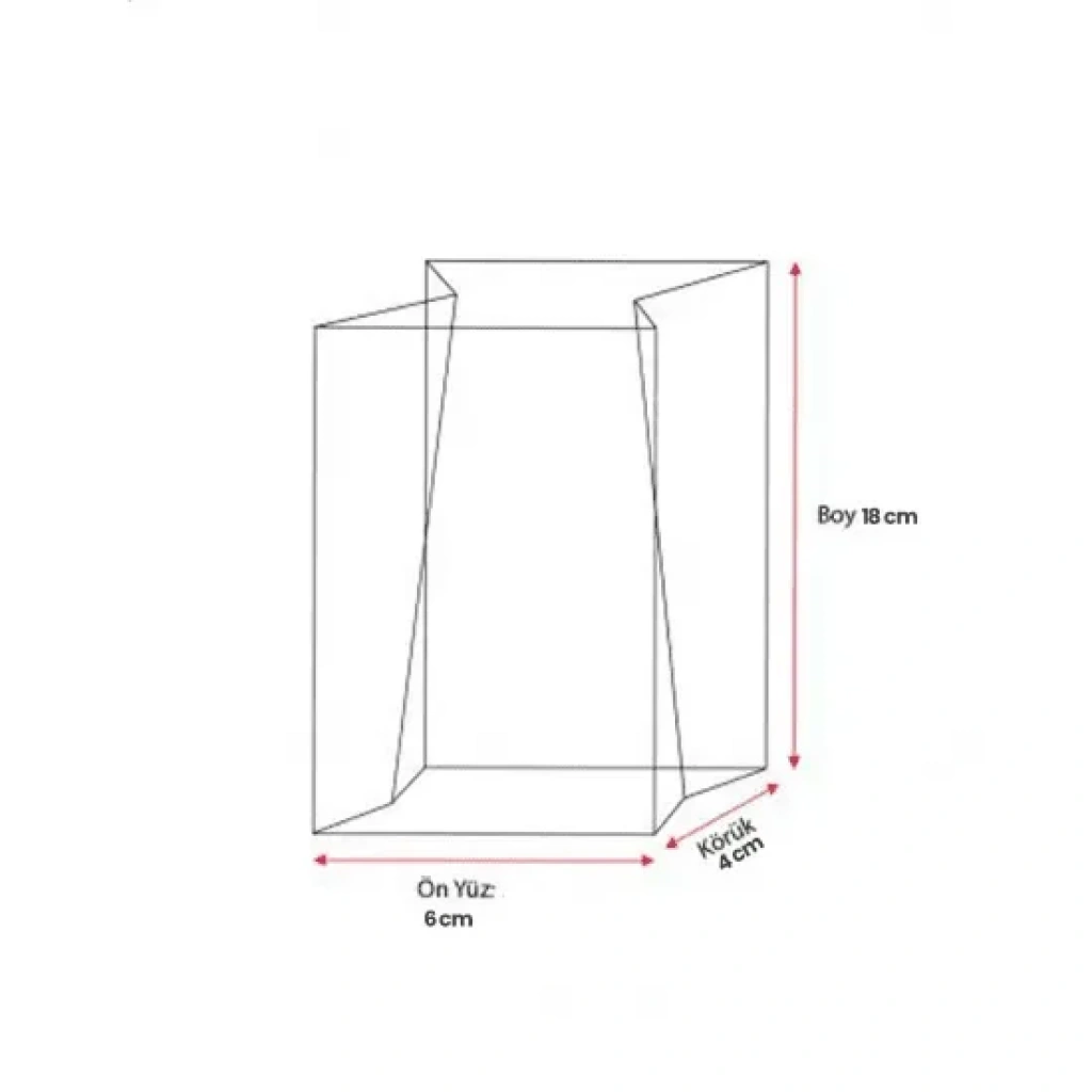 Şeffaf oturan poşetin ölçüleri 6x18 cm.'dir.