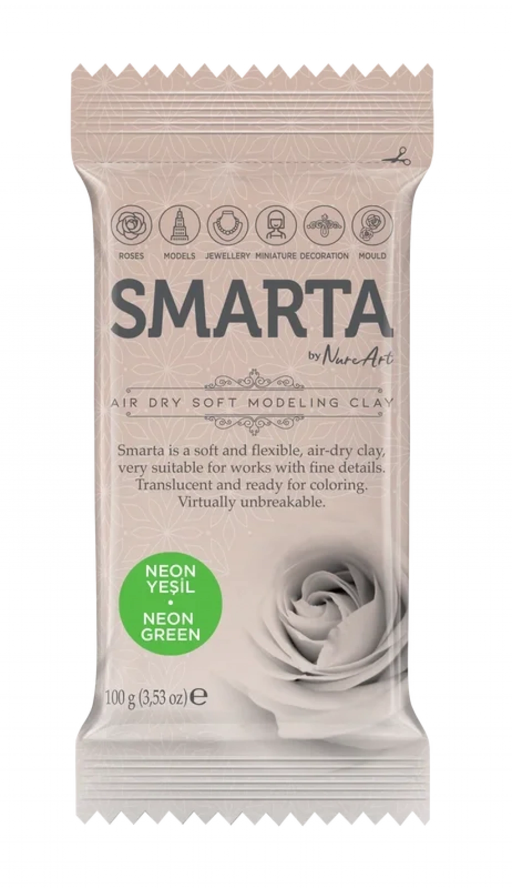 Smarta Modelleme Hamuru; her türlü hobi, eğitim ve profesyonel amaçlı çiçek, dekor, aksesuar, takı, minyatür ve sanatsal aranjman yapabileceğiniz özel bir hamurdur.