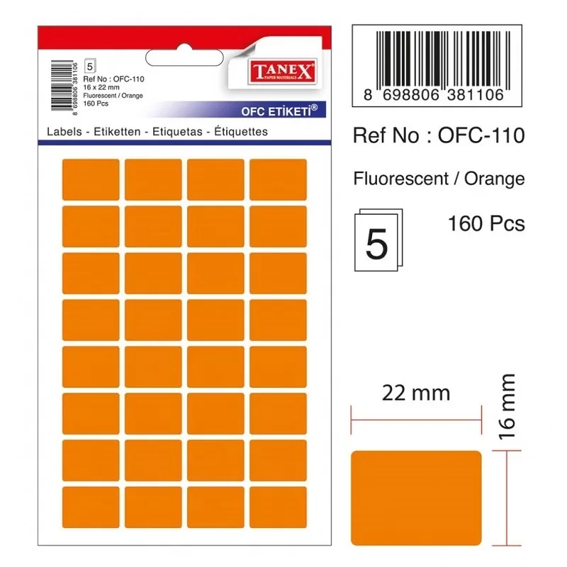 TANEX OFC-110 TURUNCU 16x22 mm OFİS ETİKETİ
