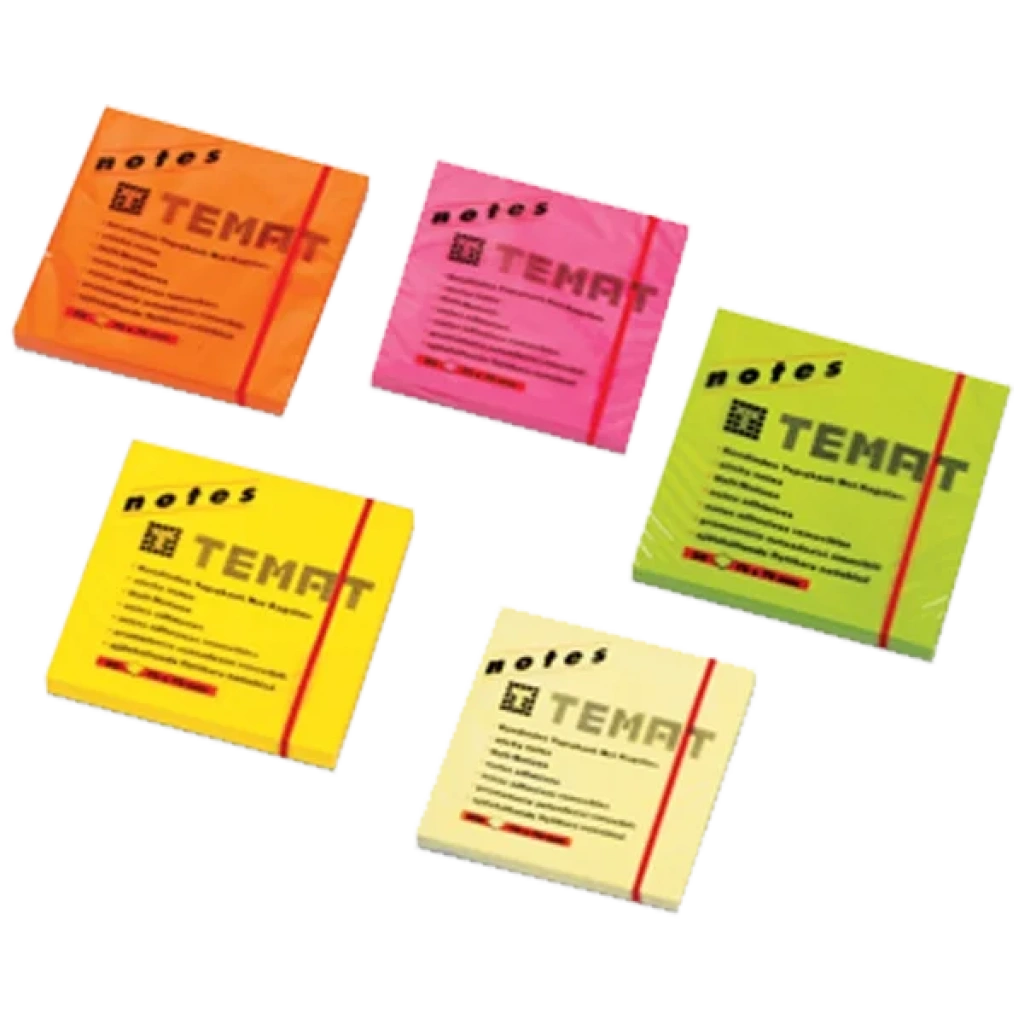 Temat Yapışkanlı Not Kağıdı 75x75 MM Fosforlu Sarı 11515