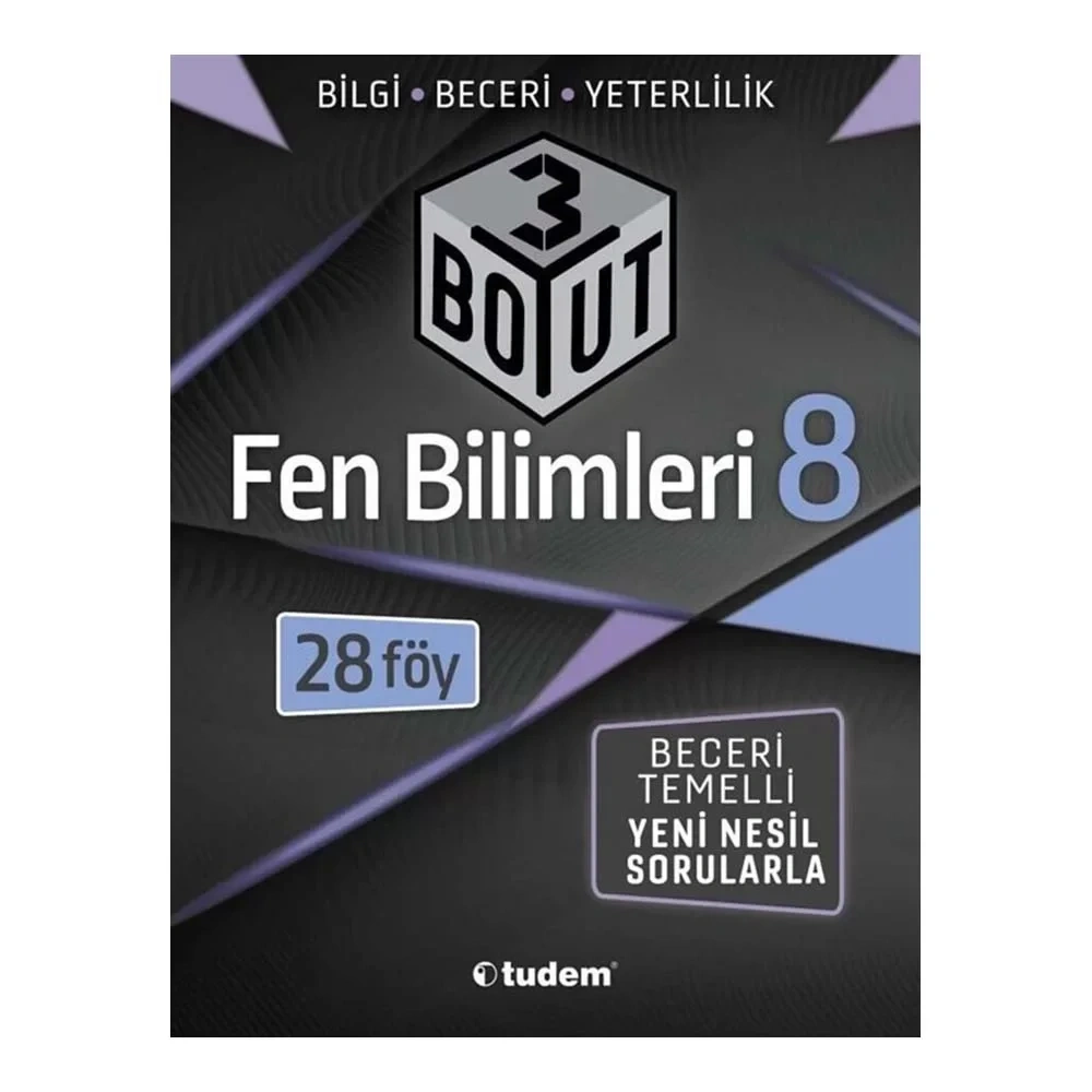 Tudem Yayınları 8. Sınıf Fen Bilimleri 3 Boyut 28 li FöyBilgi grafikleri, pekiştirici alıştırmalar-etkinlikler ve beceri temelli yeni nesil testler içeren 3 Boyut kitapları; Milli Eğitim Bakanlığının yıllık planına göre bölümlenen 8 sayfalık föylerden oluşuyor. Kitapların 8 sayfalık föylerden oluşması kullanım ve taşıma kolaylığı sağlıyor. 3 Boyut kitaplarının ön kapak içlerinde, ünite ve konulara göre bölümlenen föy planı yer alıyor. Yanıt anahtarları ise kitapların sonundaki föyde bulunuyor.3 Boyut, sadece öğrencilerin değil öğretmenlerin de işini kolaylaştırıyor. Öğretmenler, öğretim programlarını destekleyici nitelikte hazırlanan föyler ile sınıflarında konu özeti yapabiliyor; alıştırma ve örnek soru çözümleri sayesinde konuları pekiştirebiliyor; yeni nesil testler ile öğrencilerin beceri ve yeterliliklerini kolayca görebiliyor.Sınıfında 3 Boyut kitaplarını kullanan öğretmenler, kendilerine verilen akıllı dijital asistan AKAS şifresi sayesinde, kitap içeriklerini akıllı tahtaya yansıtarak eğitimde teknolojiyi rahatça kullanıyor.