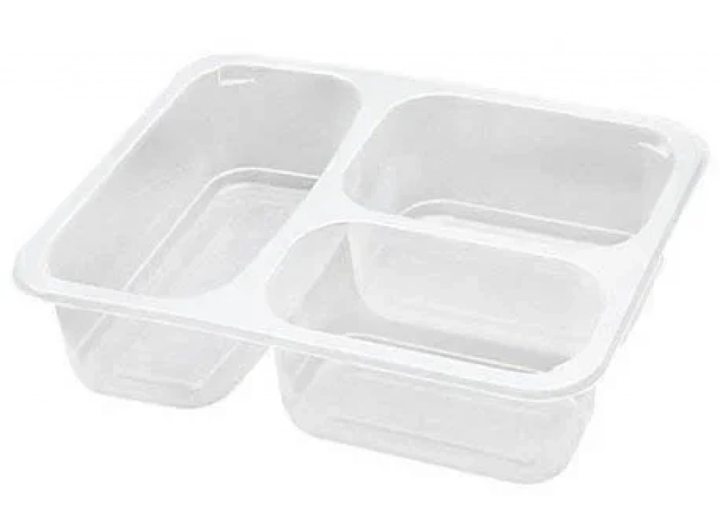 23 cm uzunluk ve 18 cm genişliğe sahip sıcak yemek servis kabıdır. 120 derece sıcağa dayanıklıdır ve mikrodalga fırında ısıtılabilir. 3 bölmesi sayesinde 3 ayrı yemeğin servis edilmesinde veya paketlenmesinde kullanılır. Üzeri folyo ile kaplanmaya ve vakumlanmaya müsaittir.