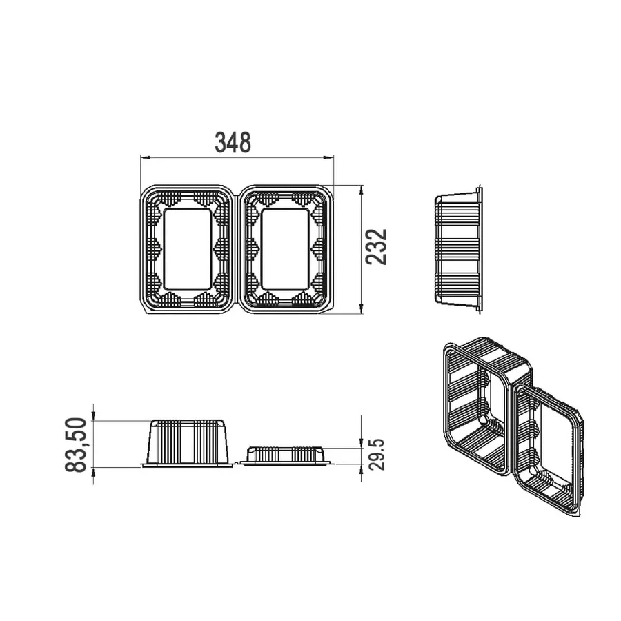 5 Bölmeli Tabldot Siyah - 25 Adet